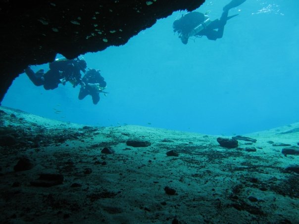 Started this dive with Ryan running the reel, I followed, and Brian was behind me.  Brian installed the first jump reel on the exit side, and then we kept moving on the gold line towards the entrance to our circuit.  Ryan installed the jump, and from there I would lead.  We went to the end of line there, and I installed the jump over to the Young Siphon (since I was the biggest, I lead the team because there was a restriction up ahead). I got to the end of the line, and turned the dive.  Ryan was now in the lead, and Brian was in the middle, I was at the back.  The two of them had gone through the restriction, and just when i was going through it, Jeff made me go OOA.  Fortunately Brian was very alert, and had air to me really fast; so we made it through the restriction.  Jeff tapped me on the head, which meant the drill is done.  I pulled the jump reel I had installed earlier.  We then proceeded to exit, when Jeff got ahead and kicked up a ton of clay, forcing us on the line in touch contact.  We did that until we reached the jump spool, where we all got back on the main line after Ryan pulled it.  After that, we had to go lights out for a good distance, until we reached the cavern zone.  Once in the cavern, we were given our lights back, and proceeded to do the deco we were then obligated to do.