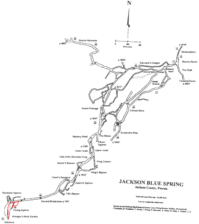 Dove this one with the UCF Dive club.  AJ Brian and myself were in search of a rumored “Grate Bypass” that someone had posted about on line (click here), and we believe we found it.  I’ve included a map with the area pointed out below.  This dive was also interesting because there were no less than 25 open water dives in the ballroom.  It was the first time I’d dove with divers not cavern/cave trained in almost a year.